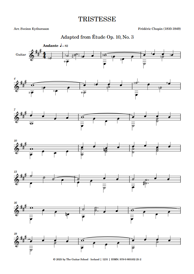 Adapted from Étude Op. 10, No. 3. Arrangement for Guitar by Sveinn Eythorsson.