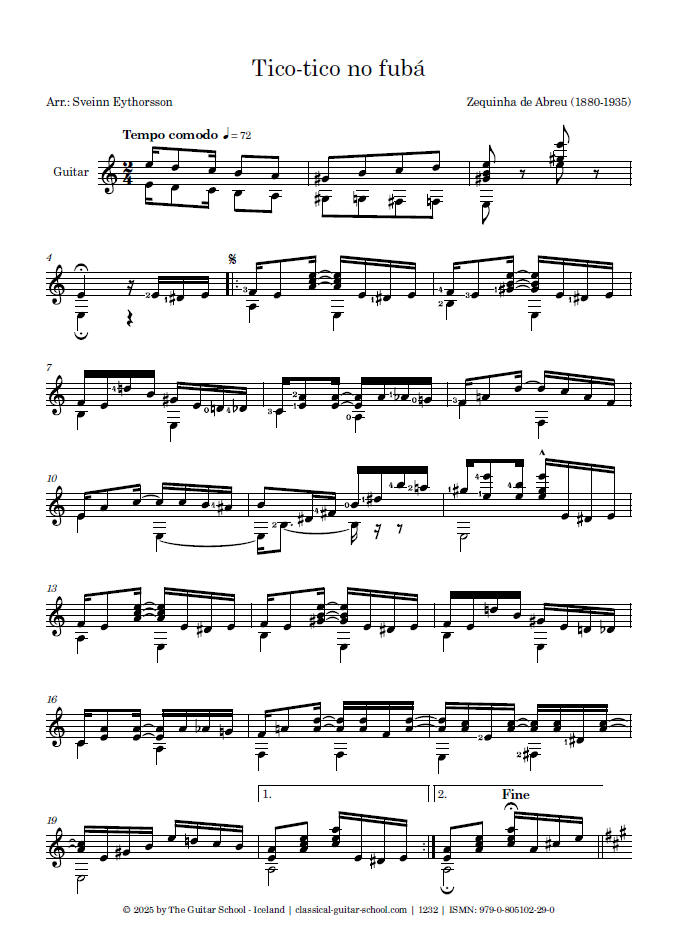 Choro Sapeca. Arrangement for guitar by Sveinn Eythorsson.