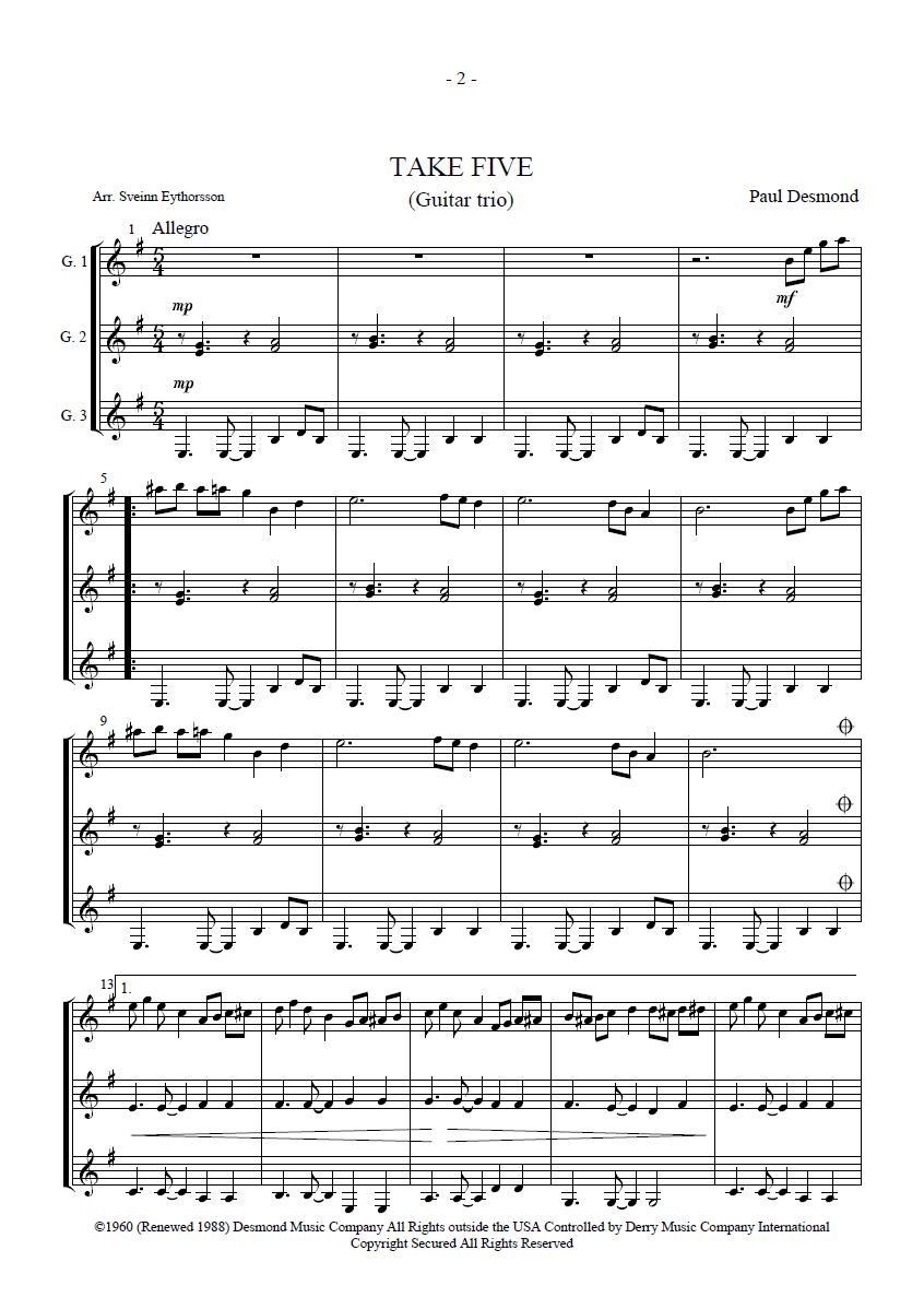 Arrangement for three guitars by Sveinn Eythorsson. Score only.